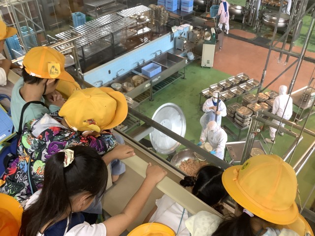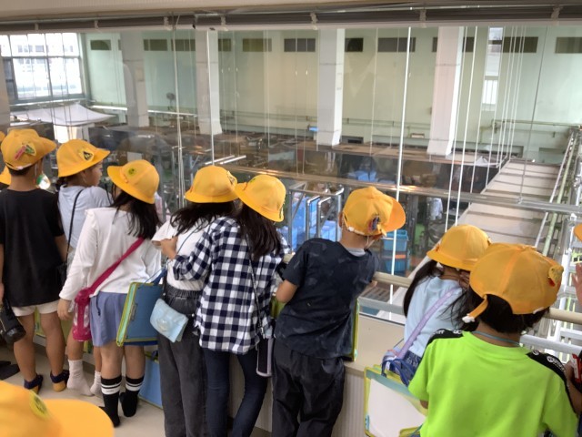 雨模様の中、元気に出かけた給食センターでは、毎日食べている給食がどのように作られているのかを見学しました。東郷小学校に栄養教諭の先生がみえるので、安心して話を聞くことができている様子でした。