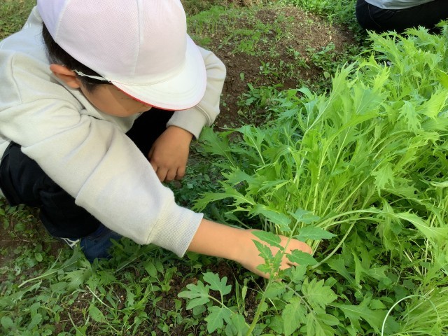 子どもたちは、「大きい!」「こんなにたくさん!」と嬉しそうに歓声を上げながら、ひとつひとつ丁寧に収穫していました。