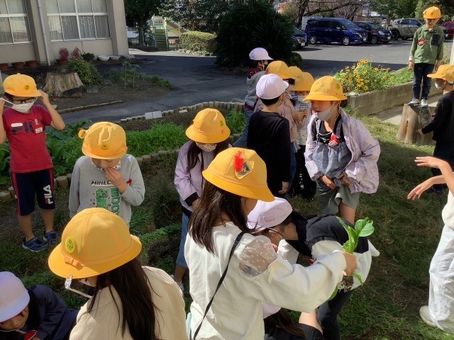 先日、生活科で育ててきた冬野菜の収穫を行いました。寒暖差がある中、水菜や小松菜はぐんぐん成長し、立派に育ちました。