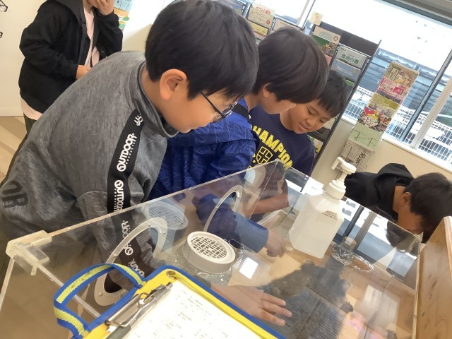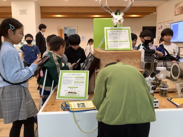 展示品にはアライグマの剝製があり、かぎなれないにおいに躊躇しながらも、果敢に触る児童を見て逞しいと思いました。