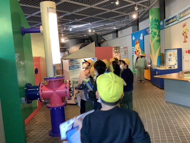下水道科学館では、普段使用している水の行方や、下水処理場の役割など学びました。トイレットペーパー以外の物をトイレに流すと水が詰まる実験や身近なことに関連した内容が盛りだくさんで、子どもたちは興味津々でした!水を大切に使っていこうね!