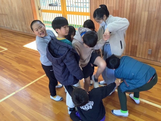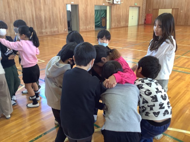 「人間知恵の輪ゲーム」では、「同じクラスの友達と協力したのが楽しかった」、「普段遊べない友達と一緒に遊ぶことができて嬉しかった」などの感想がありました。