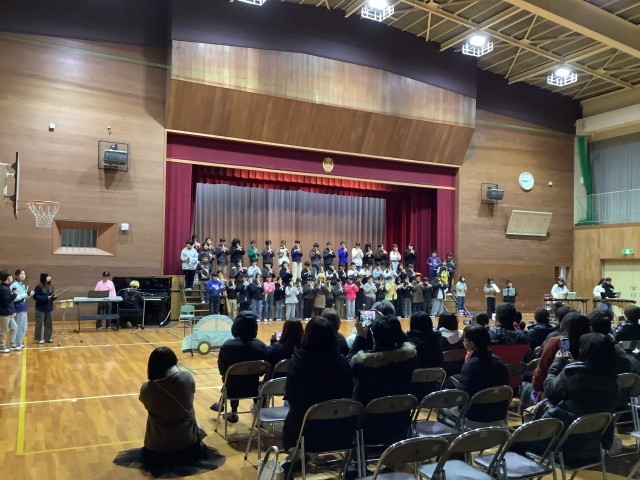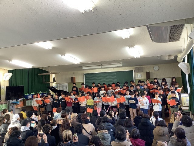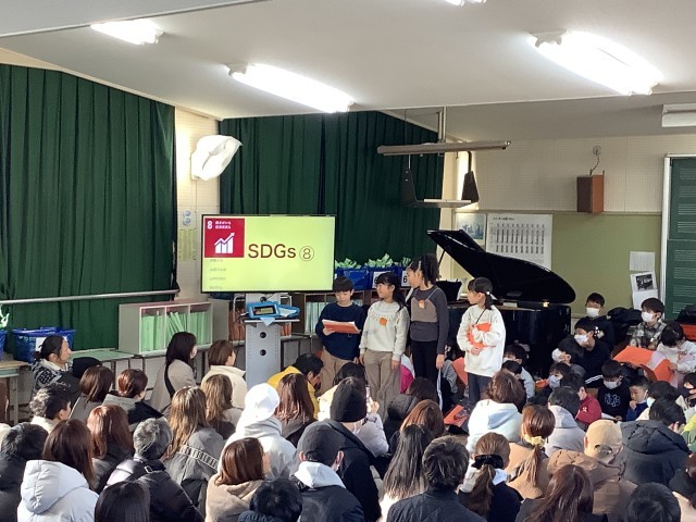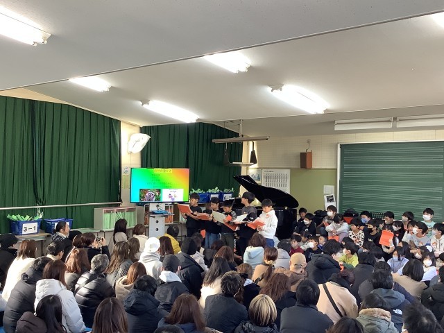 4年生は音楽室に集まって、子供たちの中で選ばれたグループがSDGsに関する調査内容を発表し、「二分の一成人式」の合唱を行いました。歌詞の中の「いっぱい叱って褒めて♪」という言葉にじーんとしました。