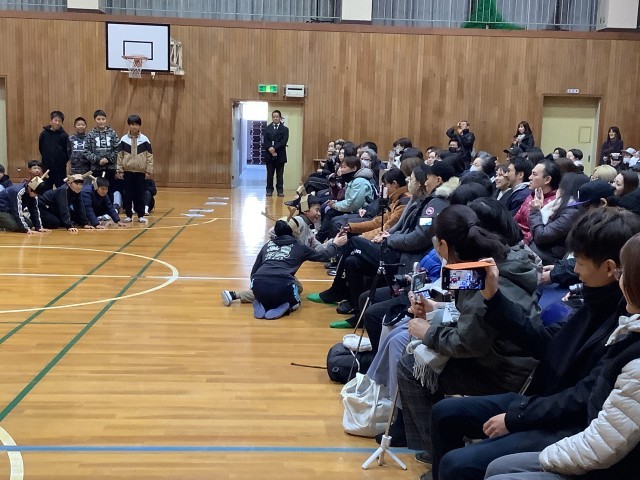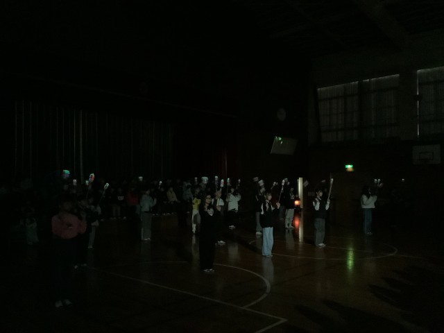 5年生は体育館で、学年キャラクターのつばめちゃんが盗まれるところから始まり、ルパンの登場、テーマソングの合奏、野外活動で行ったトーチトワリングの演技、そして音楽で習った「地球の向こう側の君へ」を合唱するという5年生らしい盛りだくさんの発表になりました。