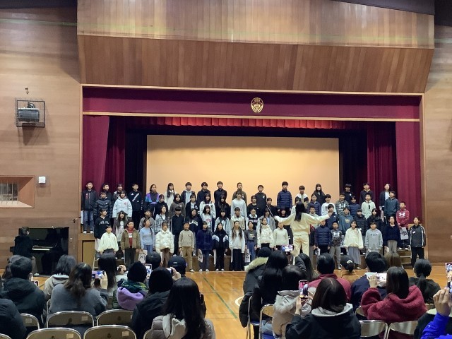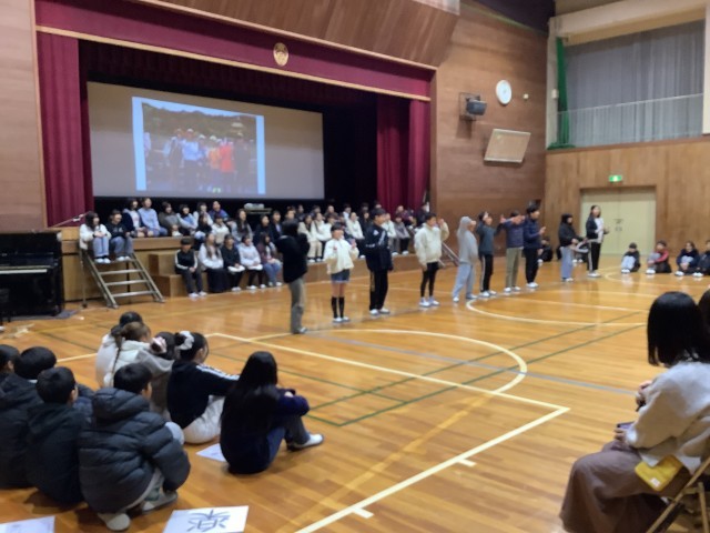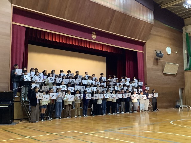 6年生は、修学旅行の様子をおもしろおかしく小さな劇にして振り返り、最後は一人ずつ自分の大切な文字について語りました。全員が堂々と発表していく様子に、6年間の月日の流れを感じた方もみえたのではないでしょうか。