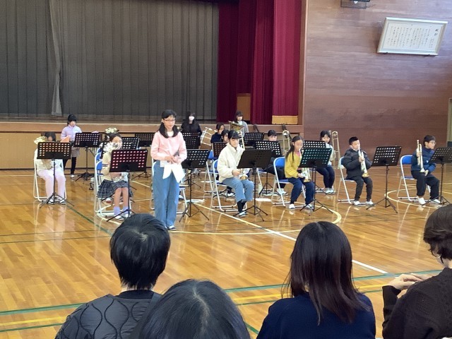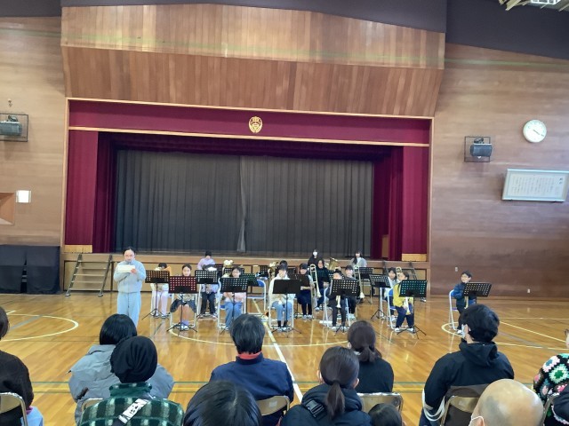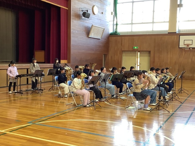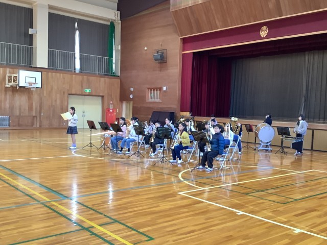 保護者の皆様、本校の子供たち、そして教職員、大勢が集まって演奏に耳を澄ませました。最後は、壮行会や離任式で式を盛り上げてくれた校歌の演奏でした。・・・