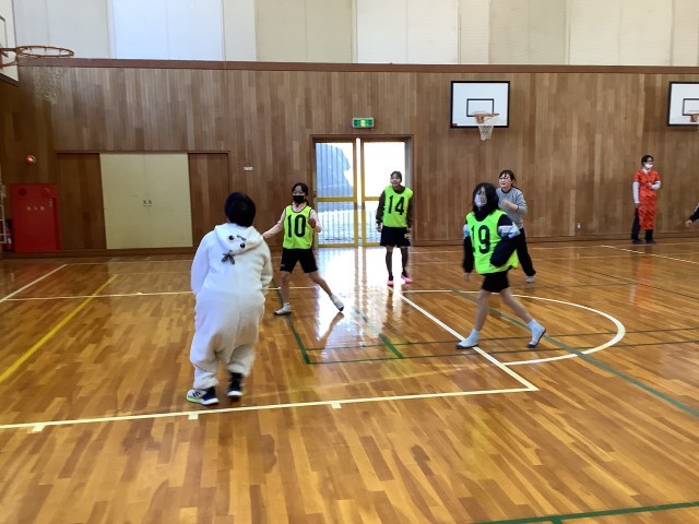 多くの教員も参加しました。ちょっと仮装大会のようになりましたが、みんなで楽しく試合をしました。