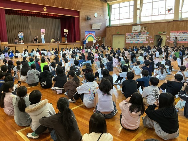 1年生が入学し、これまで新6年生が入学式の準備をしてくれました。分団では1年生を上級生が連れてきてくれています。ありがとう。今日は、1年生を迎える会でした。6年生がクイズをしたり、他の学年はプレゼントを渡したりしていました。1年生代表児童のお礼の言葉の後に、全校で自然と湧き出た拍手は、とてもあたたかいなあと感じました。