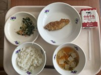献立:ごはん 牛乳 米粉のホキフライレモンソース ほうれん草ともやしのあえもの ...