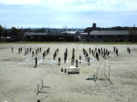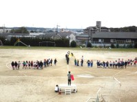 4年生の練習風景 運動場が使えるなら、ということで隊形確認をする学年が多かったで...