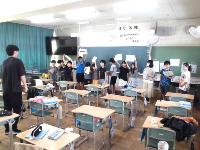 本日3時間目、5年生が週末の野外活動に向けて、それぞれの係に分かれてリハーサルをしていました。どの係もいい感じで仕上がってきているな、と感じました。今のところ、天気も良さそうです!みんなの心掛けがいいからかな?スローガン『みんなで全力キャンプ』を意識しながら、安全で、思い出に残る野外活動にしたいものです。