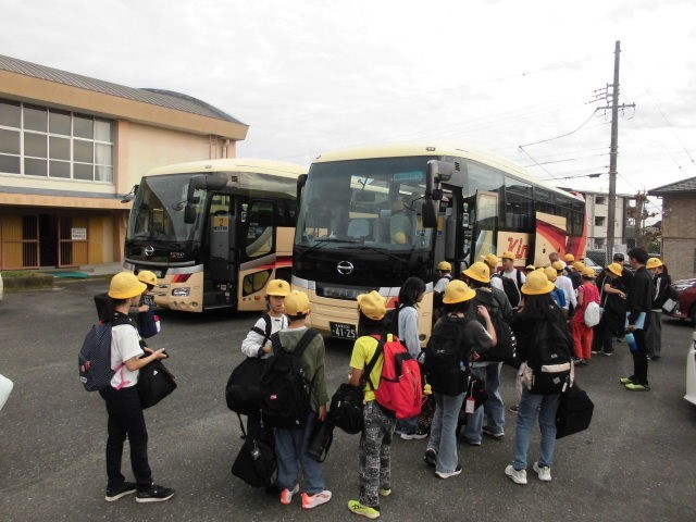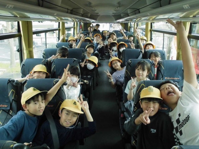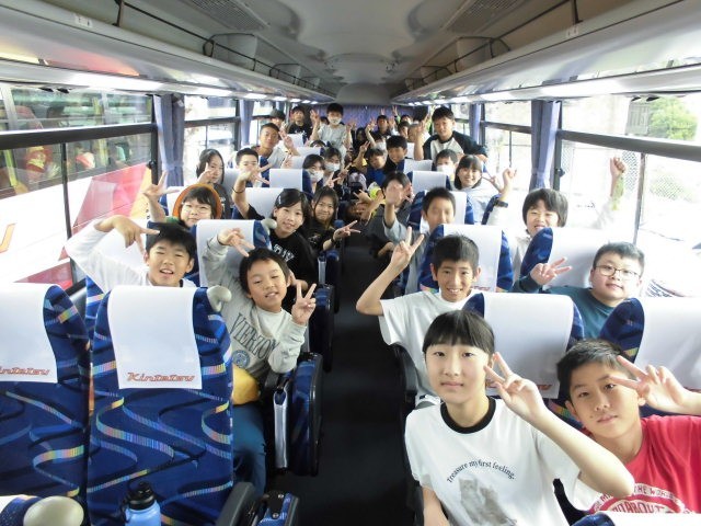 5年生の野外活動が始まりました。バスの中はにぎやかです。安全第一で行ってきます〜。