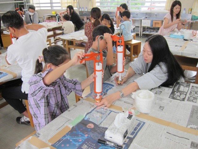 11日(土)、PTA研修部主催の「親子で食品サンプル作り教室」が開かれました。約20組の親子が、日進市藤枝町にある「さんぷる屋さん」の竹内さんの指導を受けながら、パフェづくりに挑戦しました。皆さん、オリジナルのパフェが作れて大好評だったようです。本物そっくりで、間違えて食べないようにしてくださいね(笑)PTA研修委員の皆さん、企画・運営、お疲れさまでした~!!