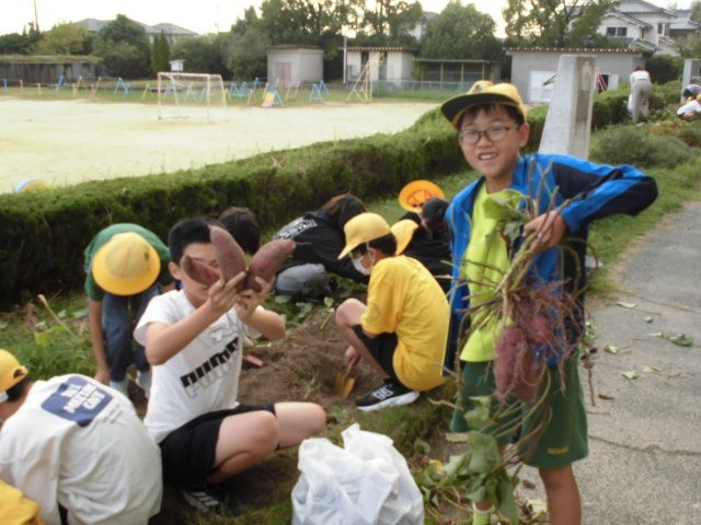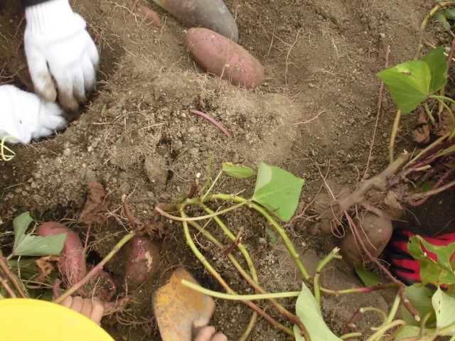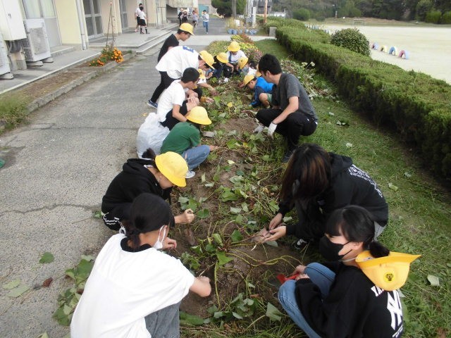 園芸部 サツマイモの収穫です!大きな芋がたくさん!歓声が上がりました。持って帰りますので食べてください。
