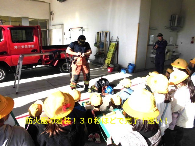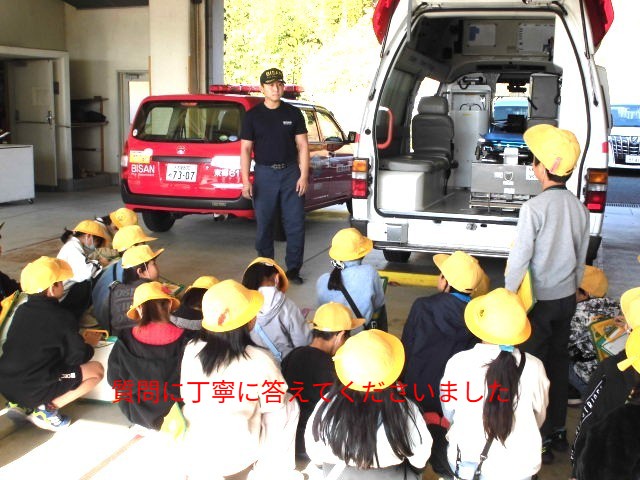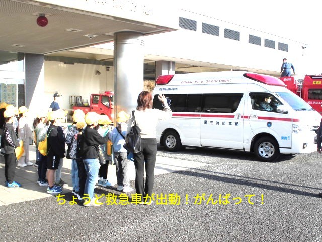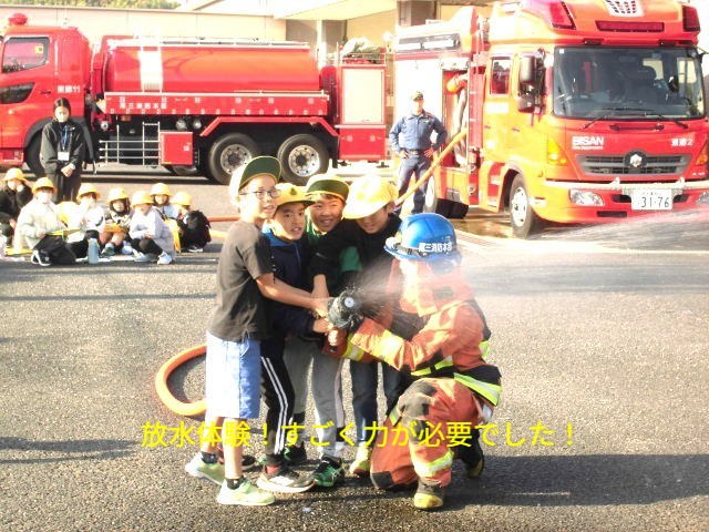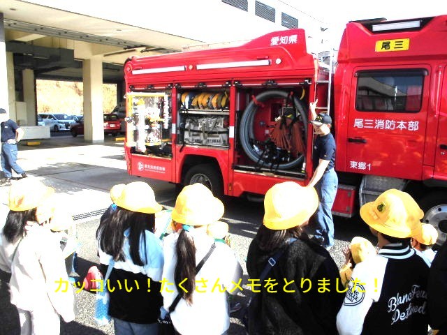 本日、3年生が東郷消防署の見学に出かけたので、私は1組についていきました。署内の見学では食堂や仮眠室、お風呂などを見せてもらいました。外に出てからは放水体験や消防車と救急車の見学をし、たくさんの質問に答えてもらいました。とても優しい消防士さんばかりで、子どもたちは終始、楽しそうに学習していました。お忙しい中、ご協力いただき感謝申し上げます。