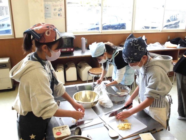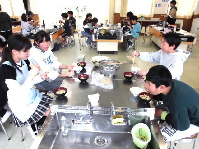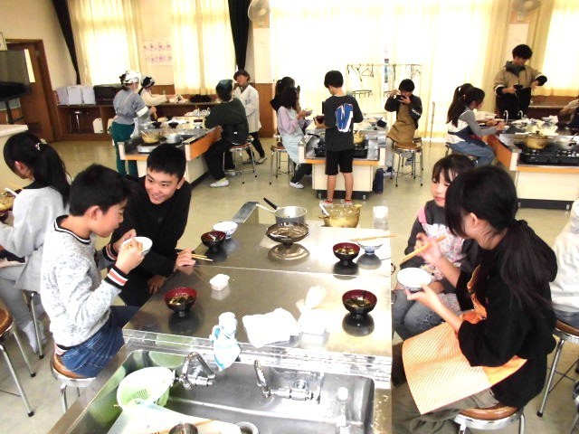 5年2組の調理実習におじゃましました。今日は、田植え&稲刈りでお世話になった石川さんから頂いた米を使った「ご飯&おみそ汁」です。米はガラス鍋で炊いたので中の様子がよく見え、みそ汁は煮干しで出汁をとりました。子どもたちは野菜を切ったり、火加減を見たり、米を炊いたりと役割分担ができていました。私は、豆腐、大根、にんじん、ワカメなどの具が入ったみそ汁を頂きましたが、どれもおいしかったです。食べたのが12時ちょっと前だったので、このあと給食たべれるのかな~?と心配になりましたが、ちゃんと食べていました(最後の写真)(笑)