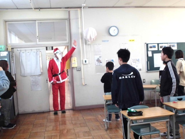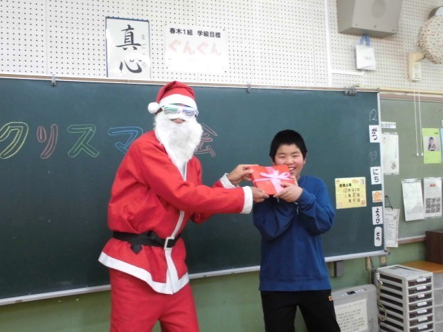 5時間目、春木学級のクリスマス会におじゃましました。ん??サンタさんも来たようですよ♪ビンゴゲームをしたり、名刺交換をしたりして盛り上がりました。来年も春木学級の子たちにとって良い年となりますように!!