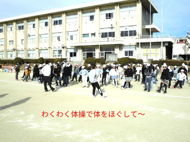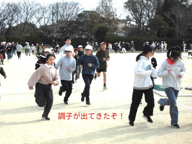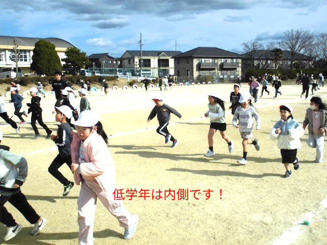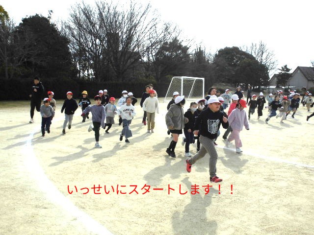 運動場に砂煙が舞うほど風の強い一日となりました。そんな中、毎年恒例の「かけ足」が始まりました。寒さをものともしない子どもたちが、なかよし放課に運動場に集結し、わくわく体操ののち、一斉に走り始めました。短い時間ではありますが、冬場の体力づくりになるといいですね。「6周走った~」と喜ぶ子がいたり、放課の間ずっと走っている子がいたり……みんな張り切っていましたよ♪