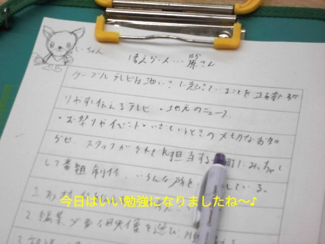 本日、5年生が「CCNet東名局」に出掛けました。社会科の「情報産業とわたしたちのくらし」の学習の一環で、百聞は一見にしかず、ということで現場を見に行ったわけです。仕事内容の説明を聞いたのちスタジオでアナウンサー体験をしたり、中継車やカメラを見せてもらったりしました。間違ったことを伝えないよう信用第一でやっています!という言葉が印象に残りました。CCNetさんには春小の田植え稲刈り、運動会、CSクリーン活動などの撮影に来ていただいていたので、今日は逆に訪問させていただき、とても良い時間となりました。準備など本当にありがとうございました。ちなみに今日の様子は2月9日から放映予定だそうです!