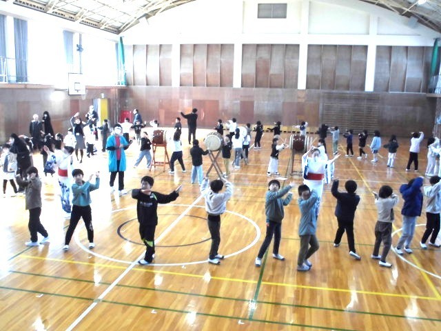 今日はその一環で、社会科や総合で地域・故郷を勉強している3年生が参加しました。東郷音頭保存会や東郷太鼓サークル華鼓の方を講師にお招きし、東郷音頭の歴史を聞いたのち、2つに分かれて教えていただきました。短い時間でしたが子どもたちは覚えが早く、楽しみながらメキメキと上達しました。最後は体育館で合わせて楽しく踊りました。これから盆踊りなどで自信をもって踊れますね~(笑)