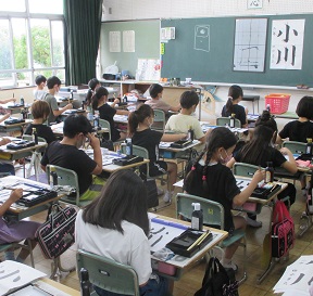 3年生習字 公開日 2021/10/01 更新日 2021/10/01 3年生 3年生が書写コンクールに向けて熱心に毛筆に取り組んでいました。毛筆は3年生からなので、まだまだ慣れないことばかりですが、集中して丁寧に書いていました。