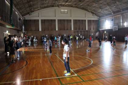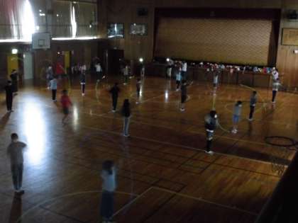 放課後、5年生のキャンプで行うトーチのリハーサルをしました。