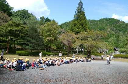 退村式を行っています。司会の皆さん役目をしっかり果たしました。時間通り帰りのバスは出発できそうです。