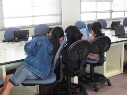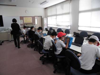 春木学級ではタブレットを使って、プログラミング教育の一環として、プログラミングソフト「スクラッチ」を用いた授業をしています。