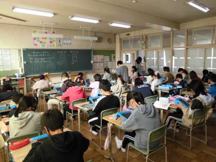 11月19日、5年2組の家庭科の授業で「物を生かしてすみやすく」という単元で、自分たちのお道具箱を整理整頓していました。