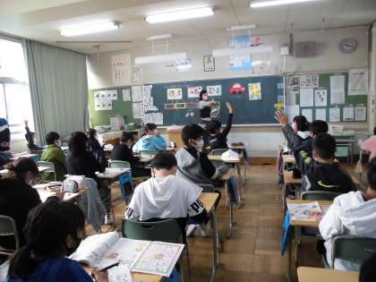 11月19日に給食センターの方に学校に来ていただき、5年生に栄養指導をおこなっていただきました。