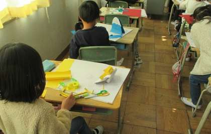 2年生が2クラスともすごろくを作っていました。折り紙や色画用紙を使った工夫や書いてある内容にも工夫がされていました。昔ながらの遊びですが、自分で作るとなお楽しいですね。