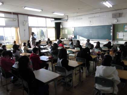 子どもたちは校長先生や生徒指導担当の先生の話をしっかり聞いていました。