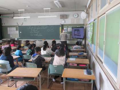 外国語活動 公開日 2022/01/14 更新日 2022/01/14 4年生 4年生がALTの先生とともに外国語活動の授業を行っていました。モニターを見ながら、会話の仕方を学ぶとともに、ALTの先生の発音の後に続いてみんなも発音していました。話すことに慣れていくといいですね。