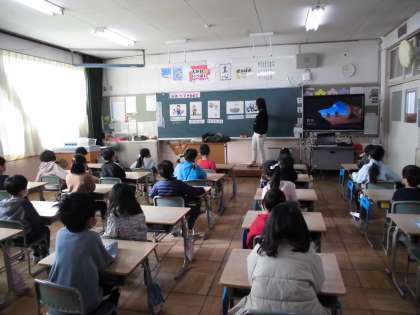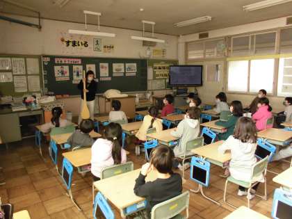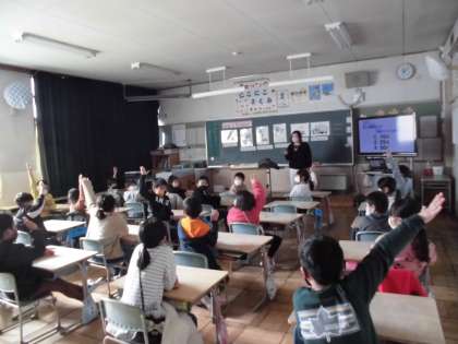 1月18日、1年生の2時間目から4時間目まで栄養教諭の先生に来ていただき、栄養指導を行っていただきました。