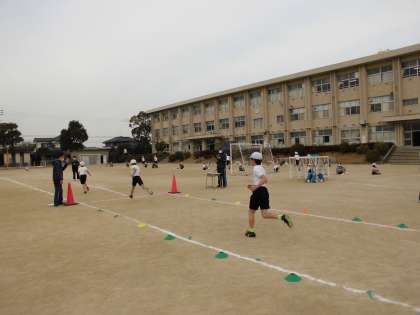 5年男子のマラソン試走です。まだ寒いです。みんなよく頑張りました。