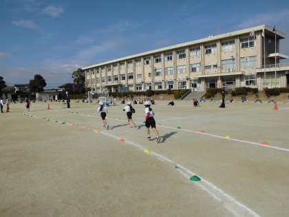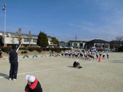 1年女子マラソン試走です。初めての試走ですが、がんばって走りましたね。