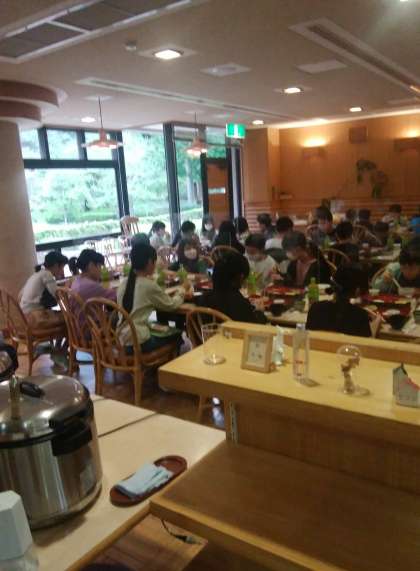 朝食を食べています。サケや納豆など和食の定番を食べています。