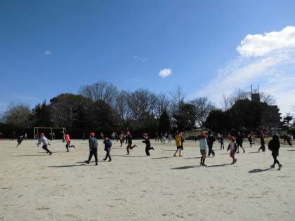 体育委員と先生が鬼になり、子どもも大人も想像以上に走っていました。最初は鬼の圧倒的不利な状況ではありましたが、最終的には鬼が圧倒的に増えていました。