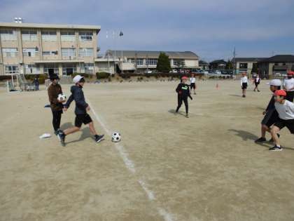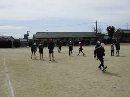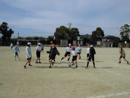 2月17日、5年2組が4時間目に運動場で体育をしていました。