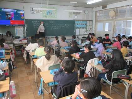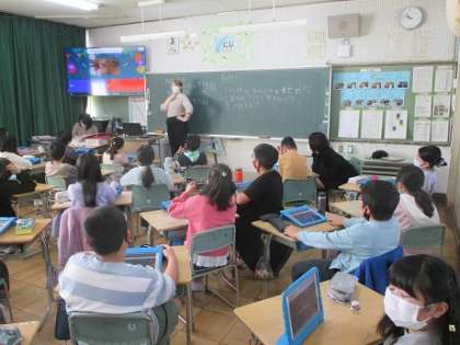 4年生外国語活動 公開日 2023/02/28 更新日 2023/02/28 4年生 4年生が外国語活動の時間に、タブレットを使ってクイズを行っていました。モニターに映し出されたクイズを個々のタブレットを使って答えていました。先生自身のことやこれまでの復習からクイズが作成されていました。とても楽しそうに盛り上がっていましたね。