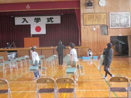 新6年生が登校して、明日の入学式の準備をしてくれました。熱心に活動する姿が見られました。最高学年として学校のために活動する姿に感心しました。ありがとうございました。