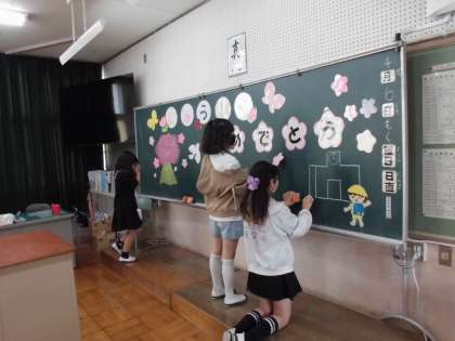引き続き、入学式準備の様子です。最高学年って感じの働きっぷりですね。春休みを終えて、一回り成長しているような印象でした。明日の入学式も万全ですね。ありがとう!