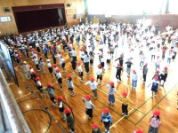 今朝は運動場の状態が悪かったため、体育館で「わくわく体操」の練習をしました。1...