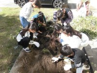 2時間目、2年生がサツマイモ堀りをしていました。全員が体験をするため、いくつか...