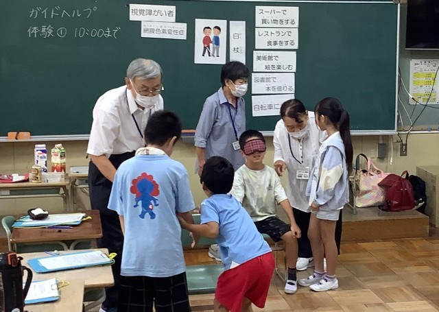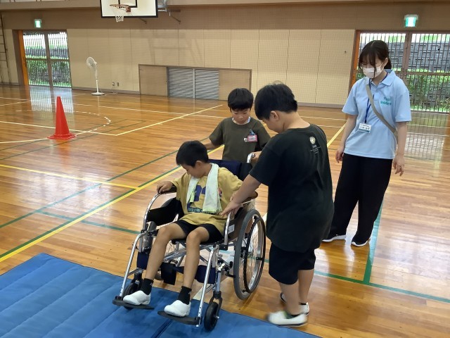 福祉実践教室は「手話」「ガイドヘルプ」「車椅子体験」の中から子どもたちが関心のある二つを選んで体験しました。