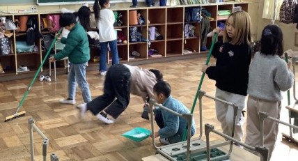式の後には、一年の終わりに感謝の気持ちをこめて大掃除を行い、教室を一生懸命にきれいにしました。