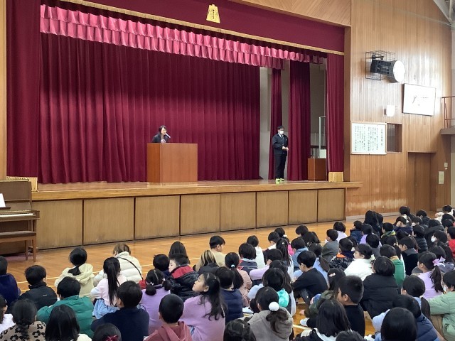 始業式では校長先生から、「今年の目標を立てて、元気に駆け抜けていきましょう」というお話がありました。