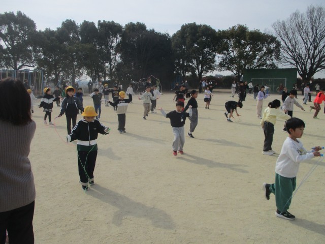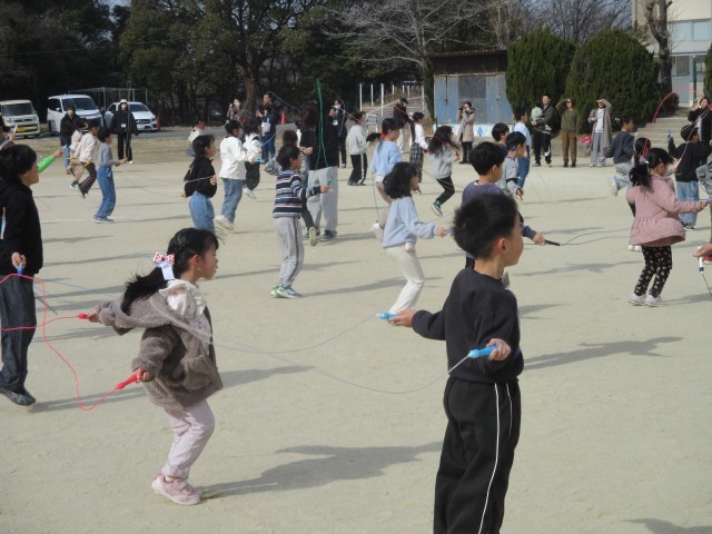 2月5日(木)授業公開日に縄跳び大会が行われました。大会では、個人で挑戦する短縄と、クラスで一丸となって取り組む大縄の2種類に挑戦しました。