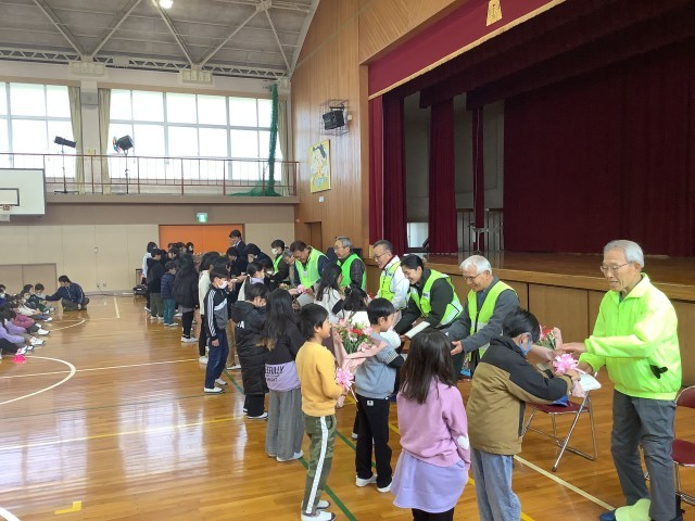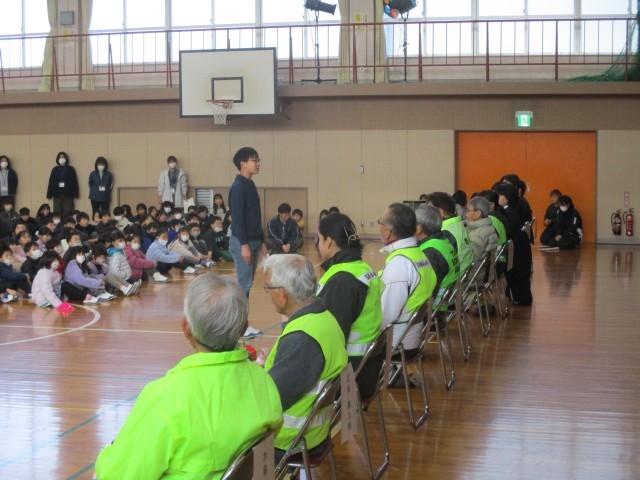 2月13日(金)に日頃から子どもたちを見守ってくださっているスクールガードや交通指導員、学校運営協議会の委員の方など、地域の皆様をお招きして「ありがとう集会」を行いました。