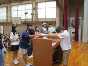 10月14日(火)、朝会を行い、先日の各委員会で決まった委員長の任命が行われました。一人ずつ児童会長から任命状を受け取り、正式に委員長となりました。各委員会を引っ張り、みんなの力でよりよい音貝小にしてほしいですね。